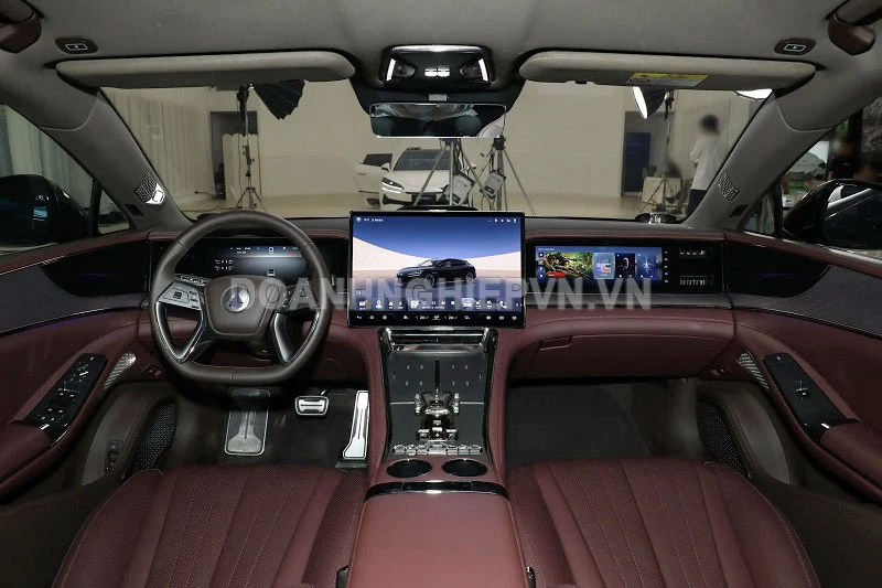 Không gian nội thất của Denza Z9 GT cũng được nâng cấp đáng kể nhằm mang lại trải nghiệm cao cấp hơn cho người dùng. Khoang cabin vẫn sử dụng bố cục ba màn hình đặc trưng với màn hình trung tâm lớn nổi bật, mang lại khả năng hiển thị và điều khiển trực quan. Xe được trang bị cần số đặt trên cột lái mới, vô-lăng thiết kế lại cùng hệ thống đèn nội thất động giúp tăng cảm giác hiện đại.