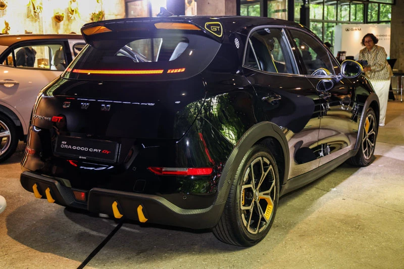 Phiên bản Ora Good Cat GT mang thiết kế thể thao nổi bật hơn với bộ bodykit GT hầm hố gồm cản trước mở rộng, ốp sườn, cánh gió sau lớn và ốp gương chiếu hậu màu đen bóng. Xe dùng mâm hợp kim chữ Y 18 inch với điểm nhấn màu vàng nổi bật trên kẹp phanh, cản và cánh gió. Nội thất theo tông đen - vàng thể thao, ghế bọc da lộn tích hợp tựa đầu, cùng cửa hậu chỉnh điện rảnh tay.