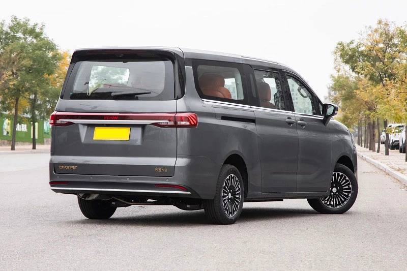 Mẫu MPV này có kích thước tổng thể dài 5.317 mm, rộng 1.870 mm, cao 1.955 mm và chiều dài cơ sở 3.200 mm mang đến không gian nội thất rộng rãi. Phần đuôi xe của BAW Ruisheng M8 được thiết kế tinh tế với cánh gió mui tích hợp đèn phanh, cần gạt nước sau và cụm đèn hậu dạng thấu kính hiệu ứng ánh sáng chuyển sắc. Các phiên bản EREV và xăng đều sử dụng thiết kế ống xả ẩn để tăng tính thẩm mỹ.