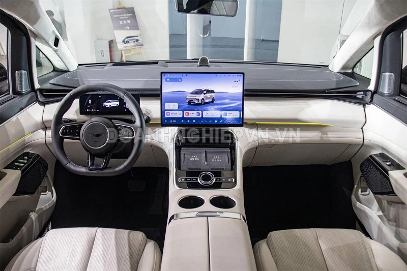 Khoang cabin của Geely Galaxy V900 EREV 2026 sở hữu màn hình trung tâm kích thước 15,4 inch, bảng đồng hồ kỹ thuật số 10,25 inch và màn hình hiển thị kính lái AR-HUD cỡ lớn 19,8 inch, giúp người lái dễ dàng nắm bắt mọi thông tin trong quá trình vận hành.