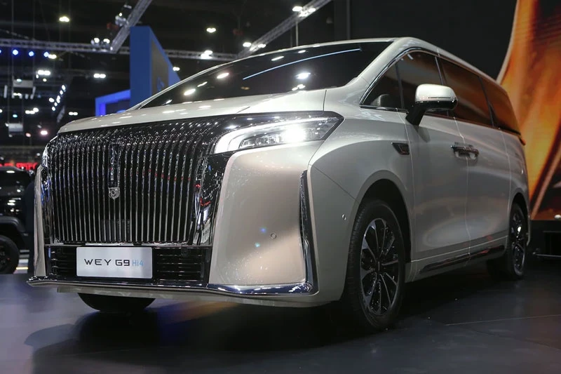 GWM Wey G9 Hi4 2026 có giá niêm yết 2,349 triệu Baht (tương đương 1,672 tỷ đồng). MPV hạng sang này có 4 tuỳ chọn màu ngoại thất gồm đen Nebula, vàng Superior, trắng Aurora và xám Wisdom. Nội thất có màu đen xám.