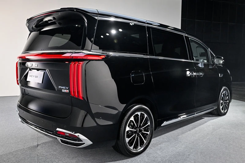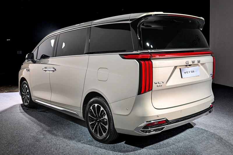 Wey G9 Hi4 thuộc nhóm MPV rộng rãi nhất phân khúc với chiều dài 5.050 mm, rộng 1.985 mm, cao 1.900 mm, chiều dài cơ sở 3.085 mm và khoảng sáng gầm 155 mm. Xe sử dụng bộ mâm hợp kim 18 inch đi kèm lốp 245/50R18.
