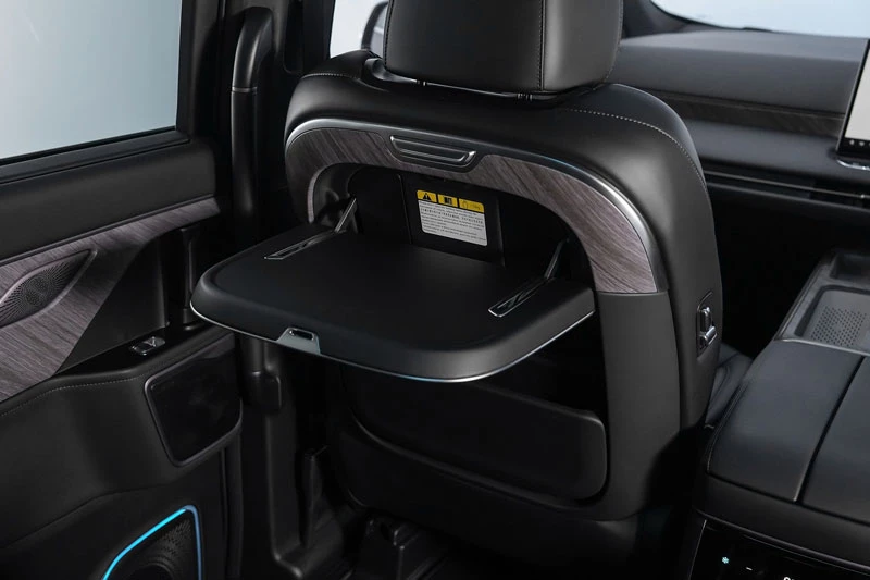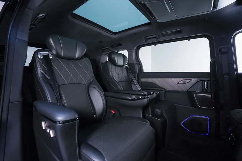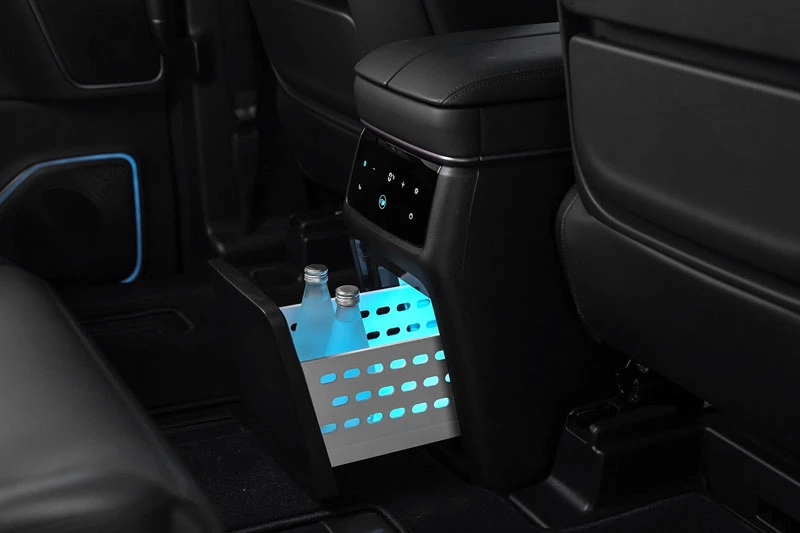 Tiện nghi nổi bật khác gồm tủ lạnh ô tô dung tích 12,5 lít, thiết kế mở kép trước và sau, có chế độ làm lạnh 0-15°C và làm ấm 35-50°C. Hệ thống giải trí dành cho hàng ghế sau là màn hình 17,3 inch đi kèm dải đèn trang trí 64 màu.