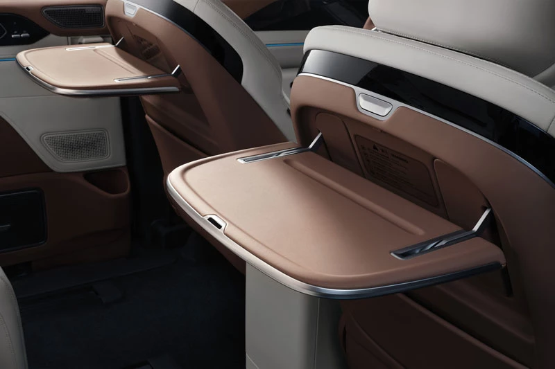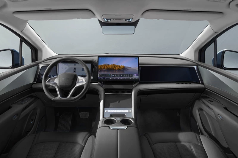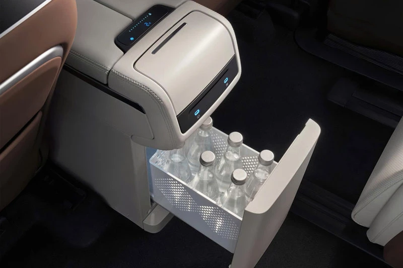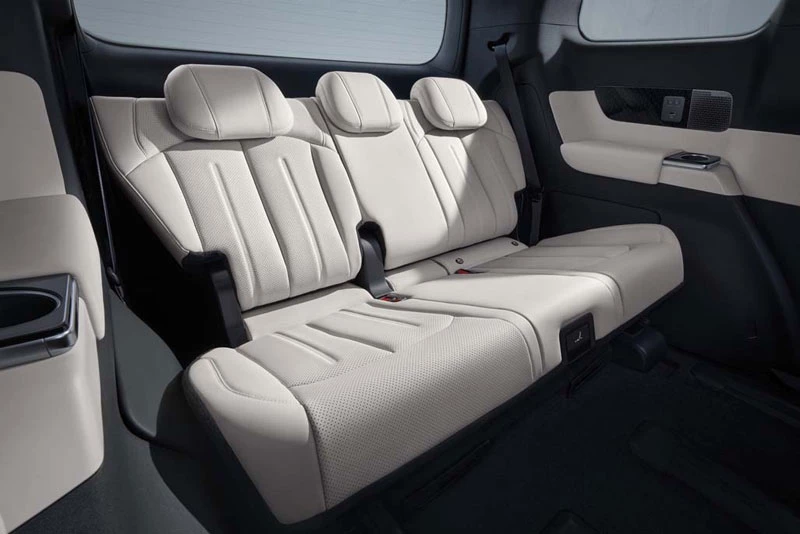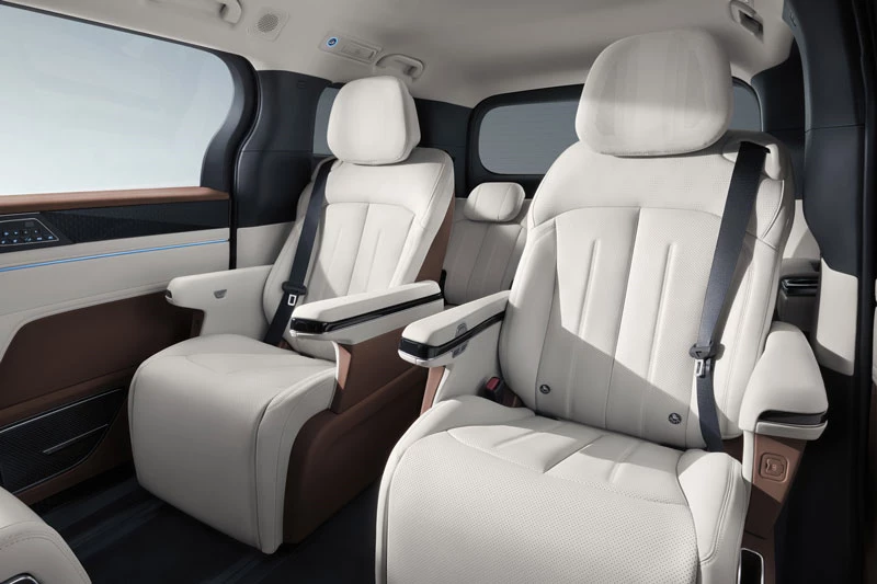 Không gian nội thất của BYD M9 được thiết kế sang trọng và hiện đại với ba hàng ghế bọc da cao cấp, trong đó hàng ghế giữa kiểu thương gia có chức năng chỉnh điện, massage, bàn gập và tủ lạnh mini. Trung tâm bảng điều khiển nổi bật với màn hình 15,6 inch hỗ trợ điều khiển giọng nói tiếng Việt đa vùng, hệ thống lọc không khí PM2.5, và dung tích khoang hành lý hơn 2.000 lít khi gập hàng ghế sau.