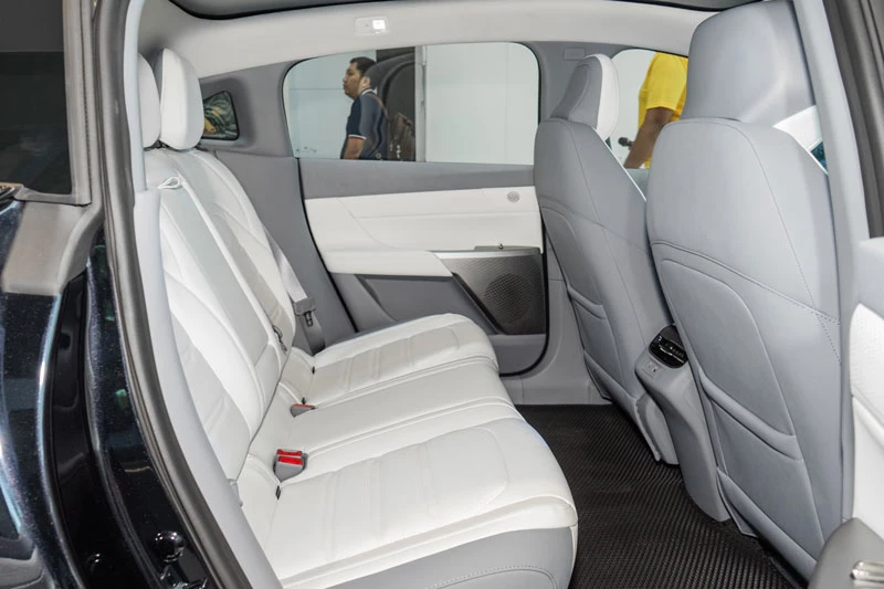 Nội thất dùng chất liệu giả da, với hai tùy chọn màu đen - trắng cho bản RWD và xám - trắng cho bản AWD. Ghế trước chỉnh điện và thông gió, ghế lái có bộ nhớ vị trí, hành khách phía trước chỉnh điện 4 hướng. Xe có cửa sổ trời toàn cảnh, cốp sau đóng mở điện dung tích 452 lít và một khoang hành lý trước (frunk) cỡ nhỏ, dù một số trang bị như điều hòa tự động một vùng hay vô-lăng chỉ chỉnh độ nghiêng bị đánh giá là chưa tương xứng phân khúc.