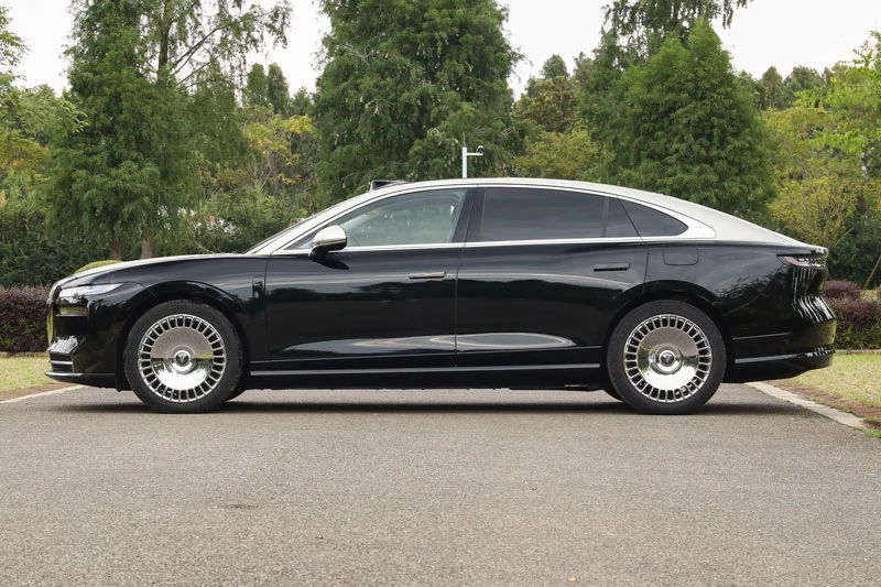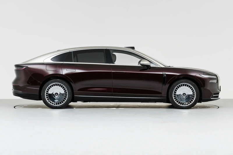 Từ bên hông, Voyah Chasing Light L nổi bật với đường mui mềm mại, tay nắm cửa ẩn và bộ mâm 20 inch có hai kiểu thiết kế kiểu tròn lớn và kiểu đa chấu. Kích thước tổng thể của xe lần lượt là 5.125x1.985x1.522 hoặc 1.505) mm, chiều dài cơ sở 3.010 mm giúp tối ưu không gian cabin.