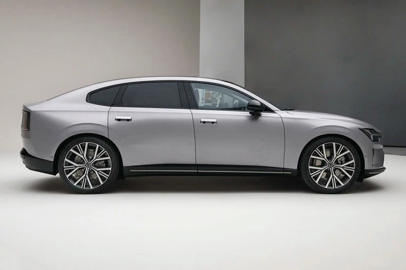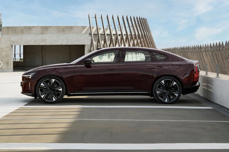 Nhìn từ bên hông, Volvo ES90 2026 giữ cấu trúc sedan ba khoang truyền thống nhưng được tinh chỉnh với đường vai kéo dài xuyên suốt, kết hợp tay nắm cửa ẩn giúp tăng tính khí động học. Kích thước tổng thể của xe đạt 5.000 x 1.942 x 1.553 mm, chiều dài cơ sở 3.102 mm, mang lại không gian rộng rãi cho hành khách. Xe cung cấp các tùy chọn mâm từ 20 đến 22 inch tùy phiên bản.