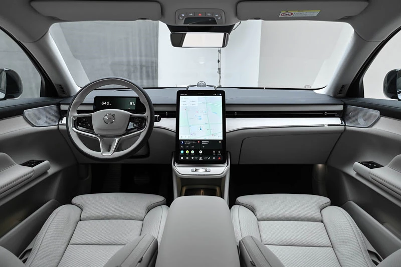 Không gian nội thất của Volvo ES90 hướng đến sự sang trọng và công nghệ cao với bảng đồng hồ kỹ thuật số 9 inch kết hợp vô-lăng ba chấu đa chức năng và màn hình trung tâm 14,5 inch dạng dọc. Thiết kế cửa gió liền mạch tạo cảm giác hiện đại, trong khi tổng thể cabin mang lại trải nghiệm cao cấp phù hợp với khách hàng doanh nhân. Hệ thống hỗ trợ lái được trang bị chip Nvidia Orin với sức mạnh xử lý 254 Tops, cùng 22 cảm biến, hỗ trợ hệ thống Pilot Assist tiêu chuẩn.