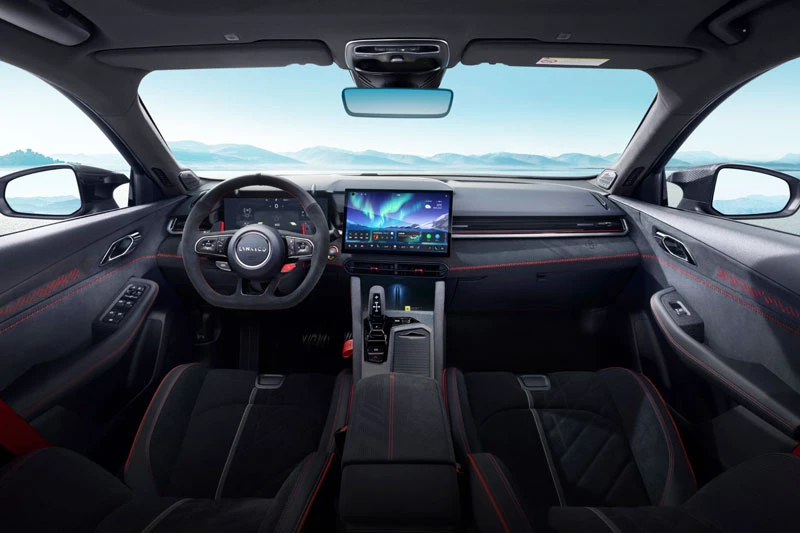 Khoang nội thất của Lynk & Co 03 2026 được thiết kế hiện đại và đậm chất công nghệ với hai tùy chọn phối màu đen - trắng hoặc đen - đỏ, cùng nội thất trắng cao cấp dành cho phiên bản đặc biệt. Xe được trang bị màn hình HUD AR 25,6 inch, cụm đồng hồ kỹ thuật số 12,3 inch, màn hình trung tâm cảm ứng 15,4 inch và chip xử lý Longying No.1 độc quyền, hỗ trợ Apple CarPlay.