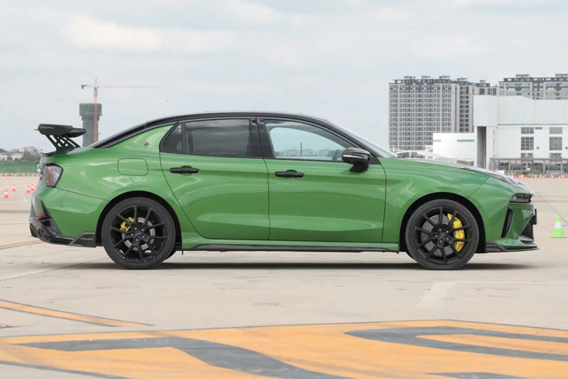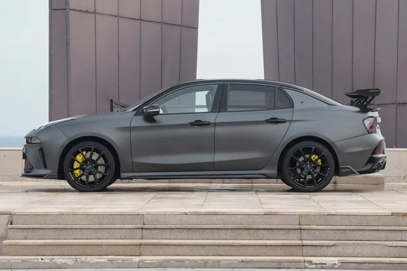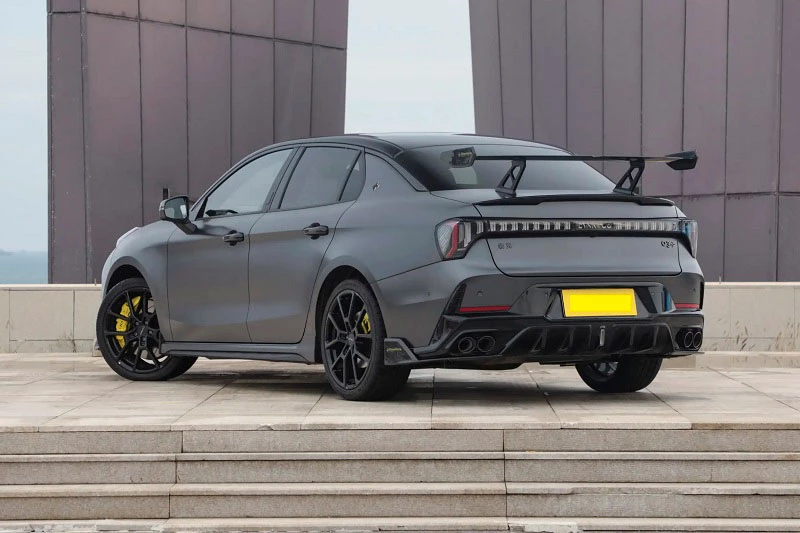 Phiên bản hiệu năng cao Lynk & Co 03+ 2026 tiếp tục phát triển theo hướng xe thể thao đường phố, với thiết kế đồng bộ nhưng hầm hố hơn nhờ gói thân rộng (wide-body kit) và bộ khí động học sợi carbon. Ngoại thất bổ sung màu xám mờ (Matte Grey) thời thượng.