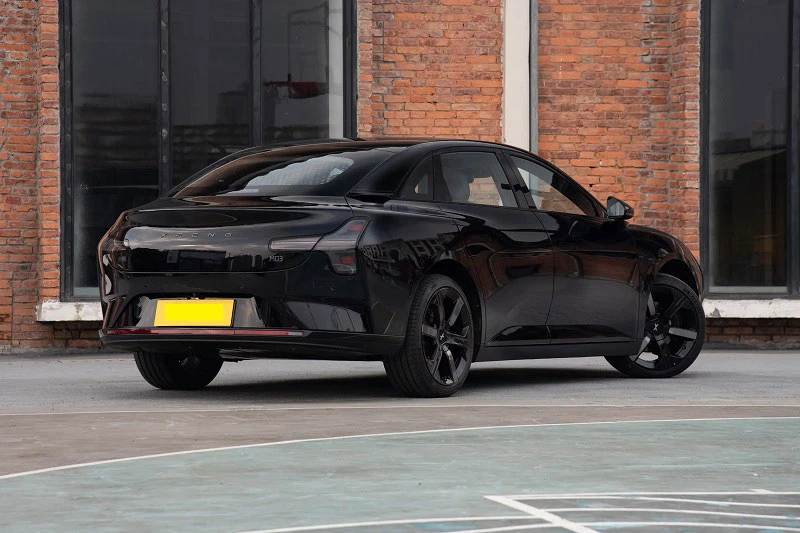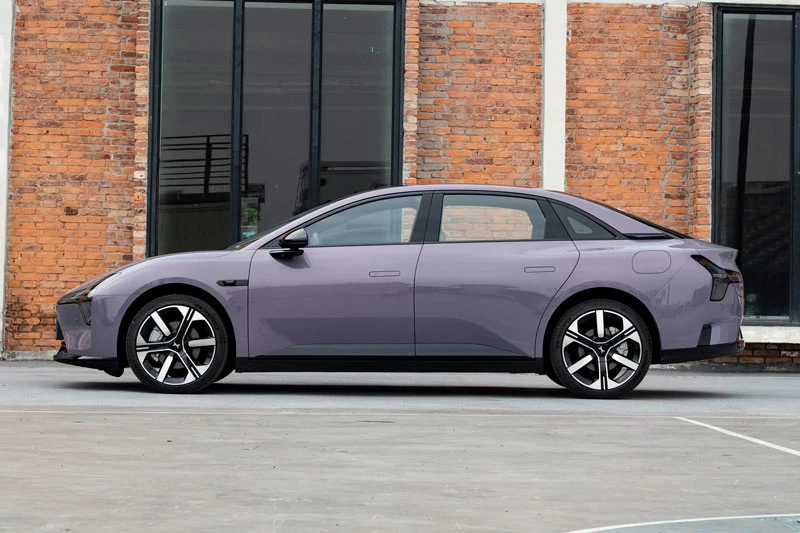 Nhìn từ bên hông, mẫu sedan điện này được trang bị bộ mâm hợp kim 6 chấu kích thước 19 inch thiết kế mới, góp phần tăng tính thể thao. Kích thước tổng thể của xe đạt 4.785x1.896x1.445 mm, chiều dài cơ sở 2.815 mm, đảm bảo không gian rộng rãi trong phân khúc. Phía sau xe được bổ sung các khe thông gió ở cản sau nhằm tăng tính khí động học và vẻ ngoài mạnh mẽ, đi kèm cụm đèn hậu tích hợp đèn báo rẽ tuần tự hiện đại. Dung tích khoang hành lý cũng được nâng lên mức 621 lít, đáp ứng tốt nhu cầu sử dụng hàng ngày.