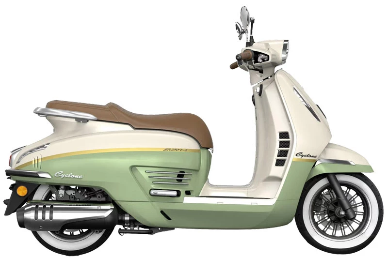 Tại Malaysia, Cyclone RT2E 2026 có 2 màu sắc cho khách hàng lựa chọn gồm vàng nhạt và ngọc lam. Giá niêm yết của mẫu xe tay ga này là 13.888 Ringgit (tương đương 86,60 triệu đồng).