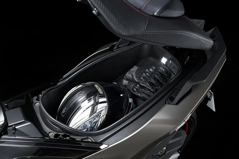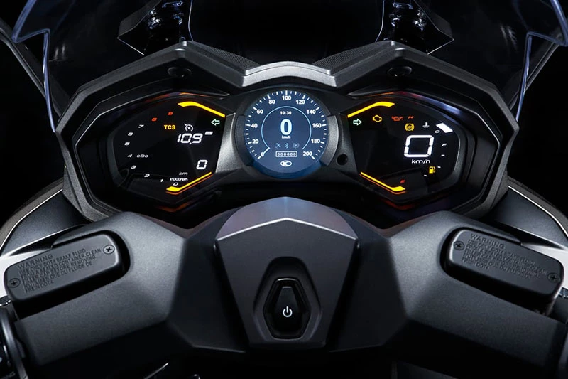 Về tiện nghi, Kymco tiếp tục ghi điểm với loạt trang bị hiện đại như kính chắn gió chỉnh điện, kiểm soát hành trình, hệ thống khóa thông minh, cùng khoang chứa đồ dưới yên đủ cho một mũ bảo hiểm full-face và một mũ 3/4. Bảng đồng hồ là màn hình TFT-LCD dạng tròn, hỗ trợ kết nối ứng dụng Noodoe để đồng bộ điện thoại, hiển thị dẫn đường, tin nhắn và điều khiển nhạc.