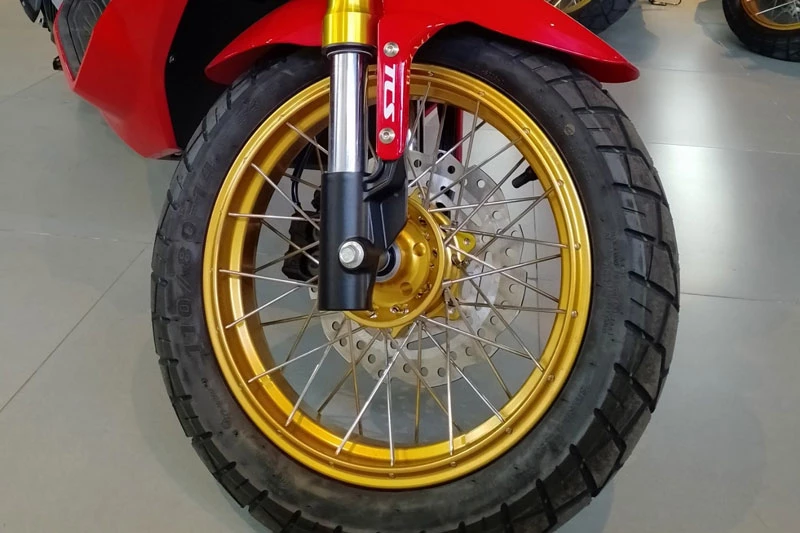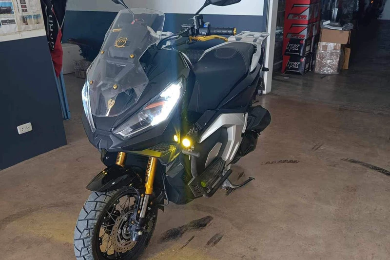 Hệ thống đèn LED toàn bộ xe không chỉ mang lại khả năng chiếu sáng tốt mà còn góp phần tạo nên diện mạo hiện đại. Điểm nhấn đáng giá nằm ở bộ mâm nan hoa kết hợp lốp đa địa hình, cùng phuộc trước upside down mạ vàng, một trang bị hiếm thấy trên các mẫu xe tay ga dung tích nhỏ giúp ADX 160 vừa đẹp mắt vừa tối ưu khả năng vận hành trên địa hình gồ ghề nhẹ.