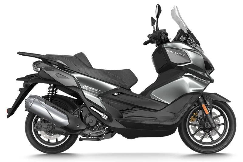 Cyclone là thương hiệu con của Zongshen. Hãng xe này vốn nổi tiếng với những mẫu maxi-scooter như Cyclone RT3 và RT5, được thiết kế cho những chuyến đi đường dài và du lịch. Tuy nhiên, phân khúc xe tay ga thể thao đô thị lại bị bỏ ngỏ trong một thời gian dài. Sự xuất hiện của RT250 đã lấp đầy khoảng trống này, mang đến lựa chọn hoàn hảo cho người dùng thành thị muốn sở hữu một chiếc xe vừa mạnh mẽ, vừa nhỏ gọn, vừa trang bị thông minh.