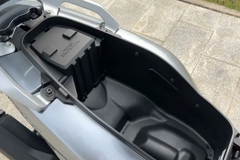 Không gian chứa đồ là một trong những điểm mạnh nổi bật của NWT150 2026. Thiết kế sàn để chân phẳng cỡ lớn 290 mm kết hợp cốp xe 28 lít cho phép chứa vừa 1 mũ bảo hiểm fullface kèm đồ dự phòng. Thử nghiệm thực tế cho thấy cốp xe có thể để vừa 4 chai nước 600 ml, trong khi hộc chứa phía trước có khả năng đặt cả giày size 43.