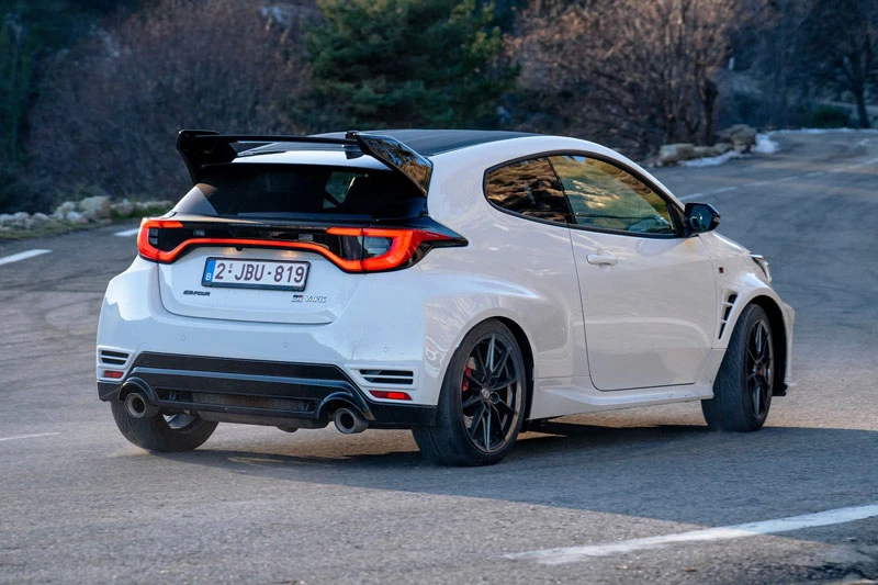 Toyota GR Yaris 2026 vẫn giữ nguyên hệ truyền động từ phiên bản trước với động cơ G16E-GTS 3 xi lanh tăng áp dung tích 1,6 lít. Khối động cơ này sản sinh công suất tối đa 300 mã lực tại 6.500 vòng/phút và mô-men xoắn cực đại 400 Nm trong dải vòng tua từ 3.250-4.600 vòng/phút. Sức mạnh được truyền tới cả bốn bánh thông qua hệ dẫn động GR-Four với ly hợp đa đĩa điều khiển điện tử và vi sai hạn chế trượt Torsen ở cả cầu trước lẫn cầu sau.