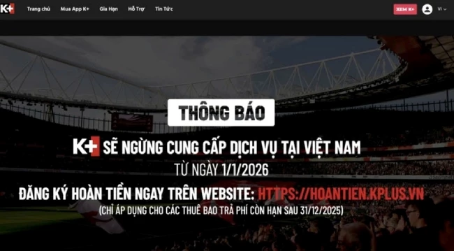 Người tiêu dùng đã trả phí và còn hạn sử dụng dịch vụ sau ngày 31/12/2025 truy cập trực tiếp vào vebsite: https://hoantien.kplus.vn và thực hiện theo hướng dẫn trên Website để thực hiện yêu cầu hoàn tiền.