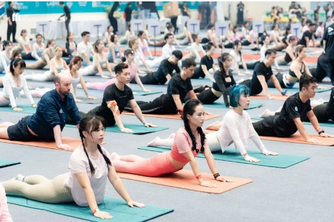 Chương trình đồng diễn Pilates lần đầu tiên tại Việt Nam với sự tham gia bởi hàng trăm hội viên và huấn luyện viên.