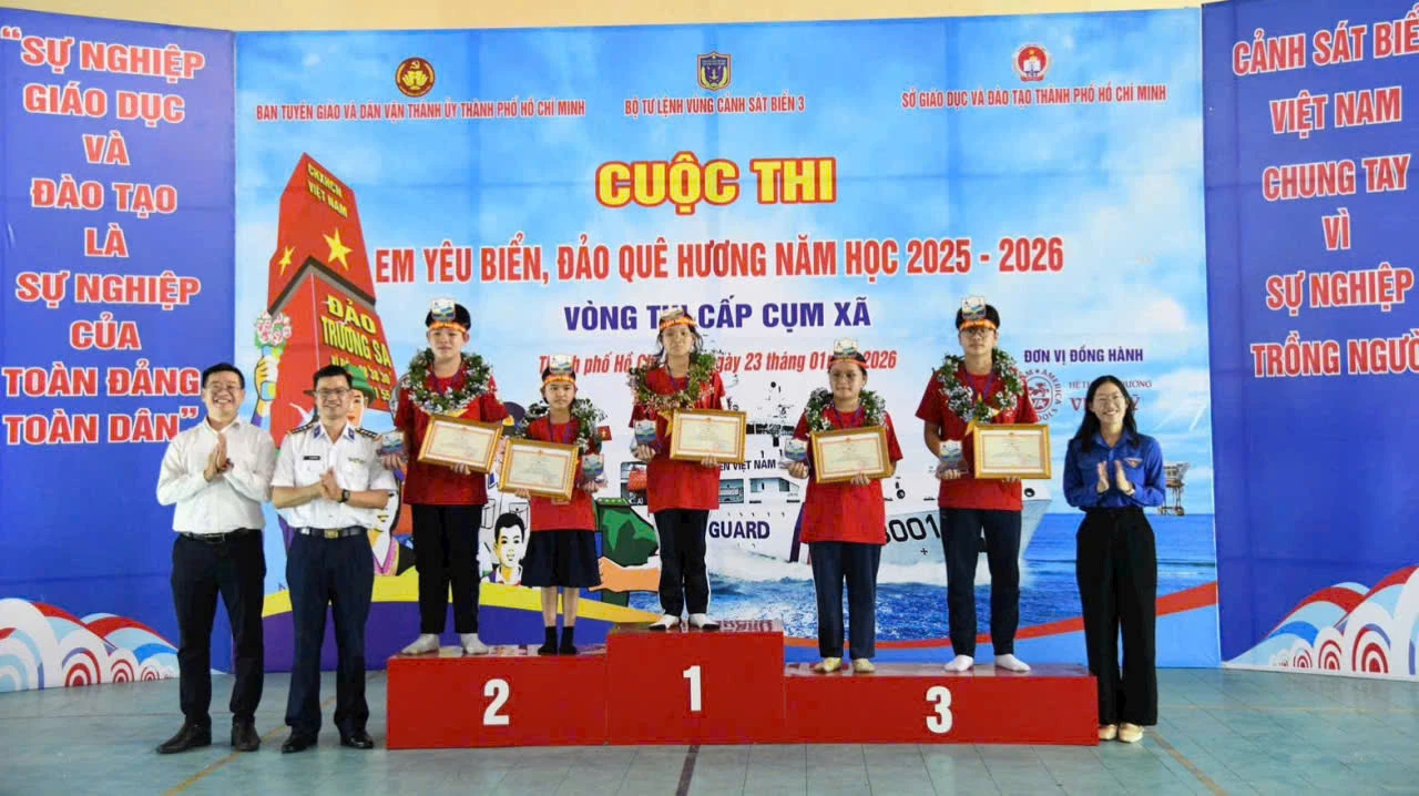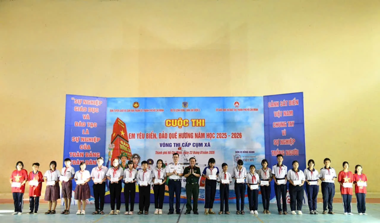 Tại xã Cần Giờ, TP Hồ Chí Minh, Bộ Tư lệnh Vùng Cảnh sát biển 3 vừa phối hợp với Ban Tuyên giáo và Dân vận Thành ủy, Sở Giáo dục và Đào tạo tổ chức Cuộc thi “Em yêu biển, đảo quê hương” năm học 2025–2026 dành cho học sinh trung học cơ sở các xã ven biển.