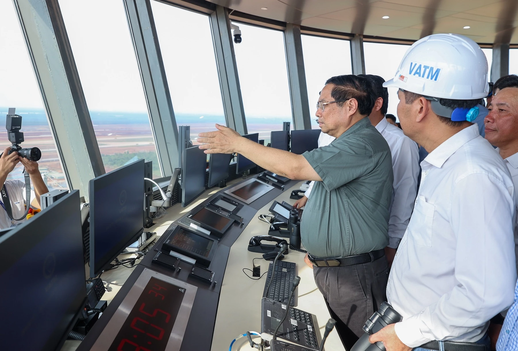 Thủ tướng Phạm Minh Chính thăm đài quan sát không lưu của Cảng hàng không quốc tế Long Thành.