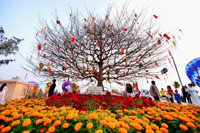 Ngay trong buổi chiều khai mạc, tại khu vực lễ hội hoa xuân, rất đông du khách đã đến ngắm cây mai Phú Quý cổ 150 tuổi được vận chuyển trực tiếp từ An Giang. Đây là cây mai vàng cổ lớn nhất khu vực miền Tây Nam bộ tính đến thời điểm hiện tại. Cây mai lớn, khoe hàng ngàn nụ hoa, hứa hẹn vài ngày nữa sẽ bung thành thảm vàng rực.