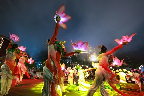 Đây cũng là dịp để Phật tử và du khách tìm kiếm cảm giác thư thái và hạnh phúc thực sự giữa đỉnh núi thiêng với nhiều trải nghiệm độc đáo tại khu triển lãm Phật giáo. Ngoài khám phá thế giới Phật giáo qua bộ phim 3D mapping với công nghệ tiên tiến hàng đầu thế giới, hay khám phá 16 ngôi chùa cổ Việt Nam qua công nghệ 3D Hologram, những trải nghiệm đặc biệt dành riêng cho du khách dịp này còn có thưởng thức trà đạo, chiêm ngưỡng các tác phẩm nghệ thuật Phật giáo từ lá sen, hay mục sở thị nghệ thuật thư pháp trên lá sen.