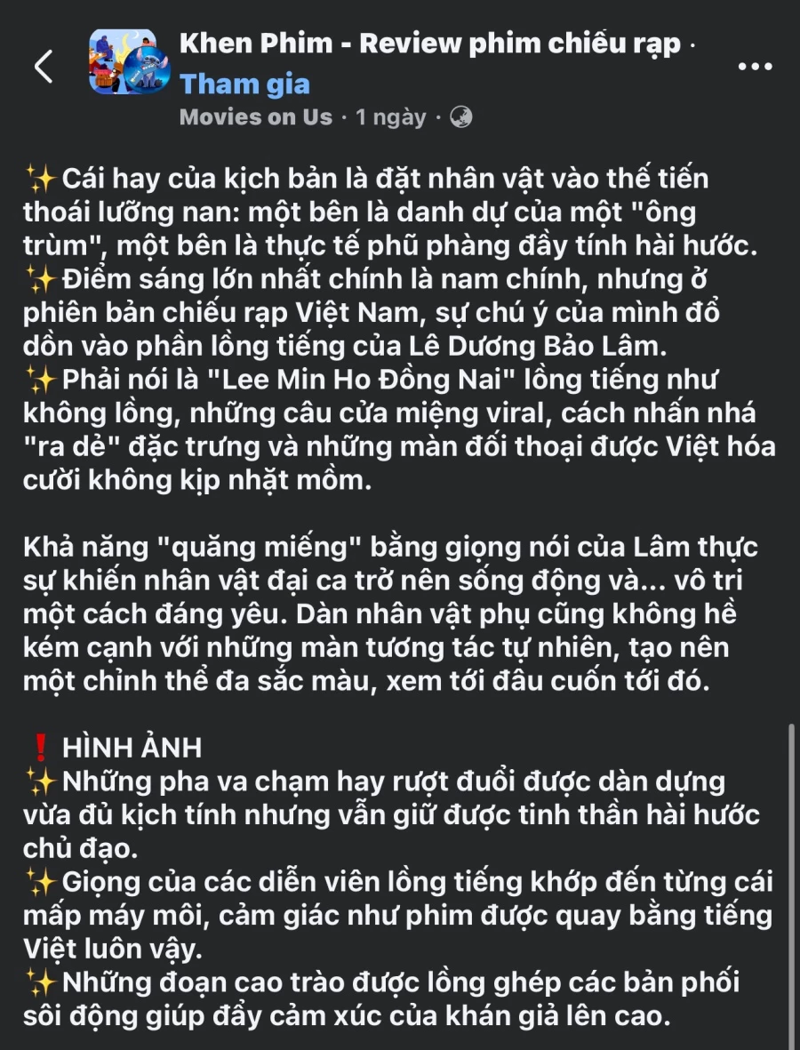 Chưa kể, phần lồng tiếng Việt của phim, đặc biệt với những pha “quăng miếng” của Lê Dương Bảo Lâm khiến “Đại ca ha ha ha” thêm phần gần gũi, thân thuộc nhưng vẫn gây cười “xối xả” đối với người xem.