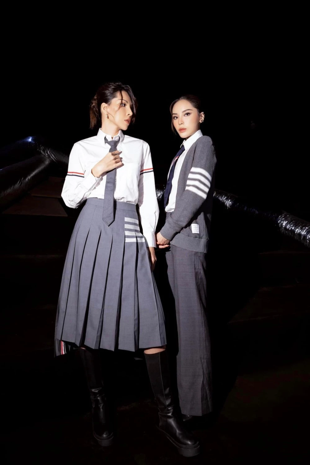 Rũ bỏ hình ảnh đa sắc và gợi cảm ở tập đầu tiên, trong tập 2, cả 2 tiếp tục gây ấn tượng với màn “lên đồ” đồng điệu từ thương hiệu Thom Browne. Nếu Siêu mẫu Minh Triệu thục nữ trong thiết kế áo sơ mi trắng và chiếc váy unisex thì hoa hậu Kỳ Duyên vẫn là chiếc áo sơ mi trắng đó nhưng lại hướng đến hình tượng tomboy khi mix cùng với chiếc quần tây và áo khoác cardigan. Bên cạnh đó, lần diện “đồ đôi” khiến khán giả “say đắm” có lẽ là phần xuất hiện với outfit tone sur tone mang sắc tím pastel đầy ngọt ngào.
