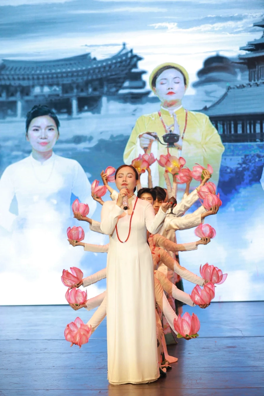Trong đêm diễn, những tiết mục như Nguyện cầu, Ngàn năm một kiếp người, Chú Đại Bi - Om Mani Padme Hum… cất lên, khơi gợi lòng tri ân cha mẹ và tinh thần từ bi hướng đến muôn loài. Thể hiện các tiết mục mang tinh thần đạo hiếu này có NSƯT Hồng Liên, ca sĩ Quốc Quốc, diễn viên Đào Hoàng Yến, Phó Chủ tịch Cộng đồng Doanh nhân Thiền ca Phương Dư…