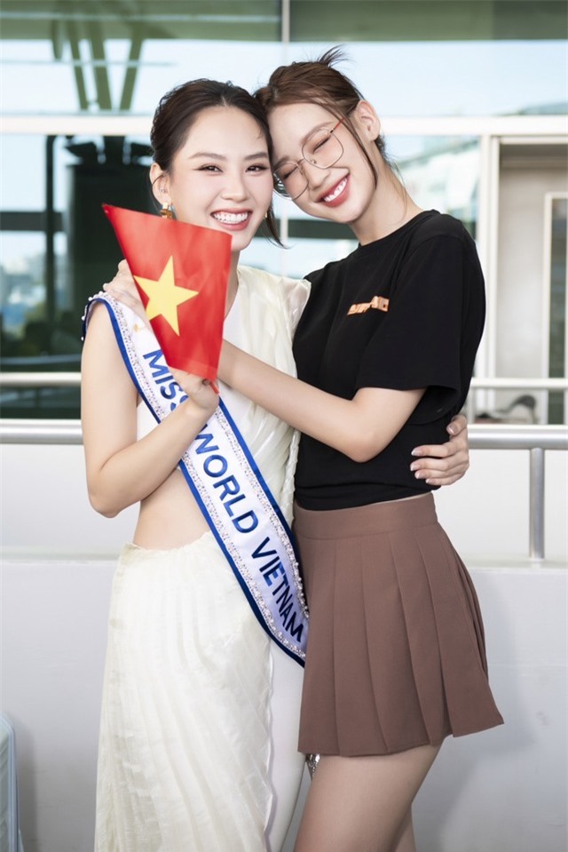 Sự có mặt, những lời chúc tốt đẹp của nhiều Hoa hậu, Á hậu cùng các fan hâm mộ tại sân bay trước giờ lên đường tới Ấn Độ khiến Mai Phương xúc động. Nàng hậu chia sẻ:'Mai Phương rất vui và cũng như rất bất ngờ vì chỉ vừa qua mùa Tết nhưng tất cả mọi người đã thu xếp để tiễn Phương đi thi. Nhờ mọi người mà Phương quên hết những lo lắng, chỉ háo hức được dự thi'.