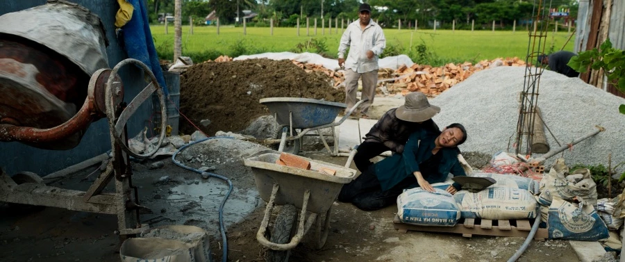 Hình ảnh bà Phúc tiếp tục được khắc họa rõ nét khi bà làm phụ hồ tại một công trường, lặng lẽ đẩy xe rùa chở gạch trong điều kiện lao động nặng nhọc. Khoảnh khắc bà ngất xỉu giữa công trường cho thấy sức khỏe đã suy kiệt, đồng thời lý giải vì sao Tài luôn cố gắng kiếm tiền bằng mọi giá để gửi về cho mẹ. Những chi tiết này giúp khán giả hiểu rằng các quyết định của Tài không xuất phát từ tham vọng cá nhân, mà gắn chặt với tình cảm gia đình và nỗi sợ mất mát.