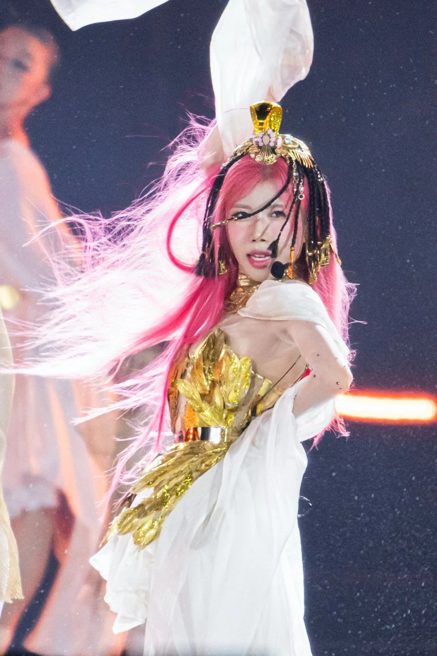 Dù không thể mang “bé Na” lên sân khấu “Hoa Nở Không Màu” như dự kiến, Trang Pháp và các chị đẹp đã linh hoạt xử lý vũ đạo để mang đến khán giả màn biểu diễn trọn vẹn. Cô cũng thể hiện phần vocal cực tốt khi liên tục lên highnote ở phần cuối bài.