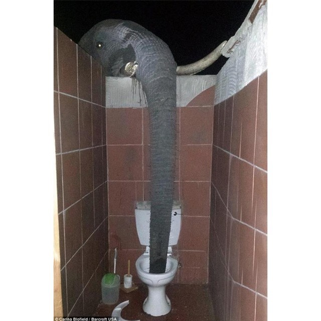 Trong một lần tìm đến nhà vệ sinh, nữ du khách đã bắt gặp phải một tình huống không thể tin vào mắt mình. Một con voi "siêu to khổng lồ" xuất hiện có thể nói từ trong không khí đã thò chiếc vòi siêu dài của mình vào để húp sạch nước trong bồn cầu, bất chấp những "tàn tích" mà những người khác để lại trong nhà vệ sinh.