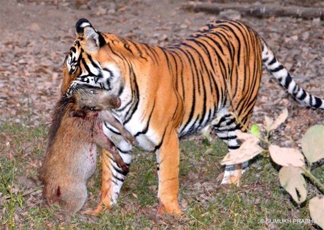 Ngay sau khi hạ sát con mồi, con hổ kiêu hãnh liền rời bỏ miếng mồi vừa kiếm được đi bộ thong dong thể hiện bá khí ngút ngàn vì nó biết rằng, không một loài động vật nào trong khu rừng này dám bén mảng đến cướp miếng ăn của nó.