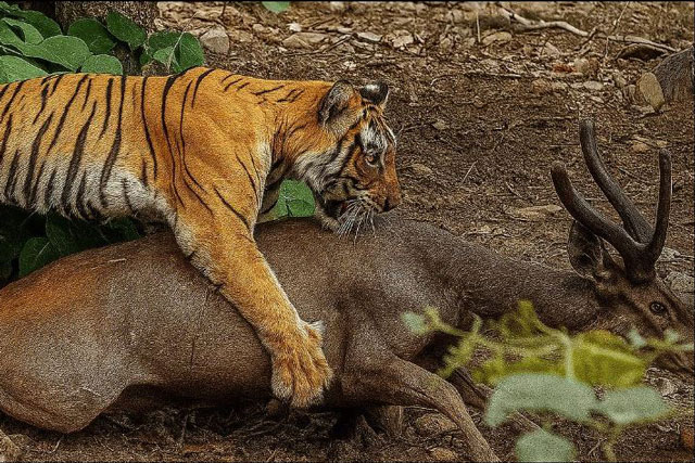 Sự việc diễn ra khi trâu mẹ bất cẩn rời mắt khỏi con, tạo cơ hội cho sư tử bất ngờ tấn công. Trong khoảnh khắc ngàn cân treo sợi tóc, trâu con bị cắn vào đầu và bị thương nặng. Tuy nhiên, điều kỳ diệu đã xảy ra khi nó vẫn có thể đứng dậy sau đòn tấn công dữ dội.
